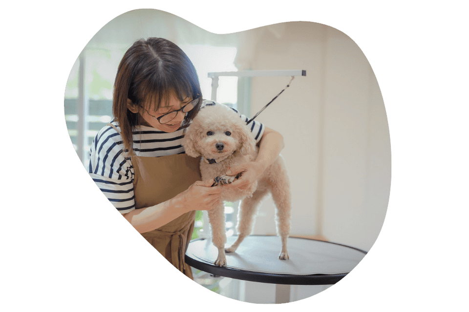 動物病院で培った知識と観察力で、トリミングの技術はもちろん、その子の体調や皮膚の状態まで丁寧に確認。